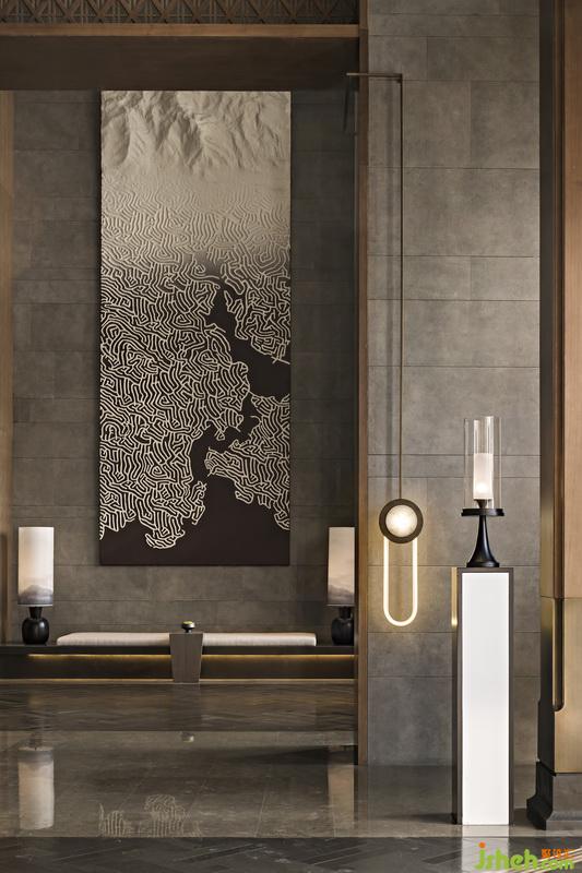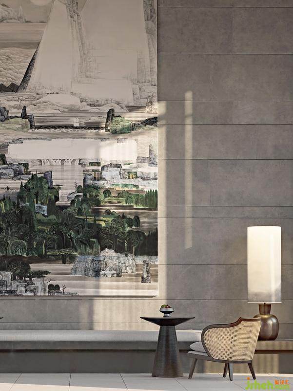 發(fā)源于齊魯之地的儒學(xué),乃中國(guó)文化的主脈,以其禮義之道,濡染一代又一代的騷人墨客。室內(nèi)設(shè)計(jì)師黃全為將儒學(xué)文化融入其中,于過(guò)廳盡頭懸掛一幅抽象山水圖,蜿蜒疊翠的山河象征著齊魯之地豐富綿長(zhǎng)的文化積蘊(yùn),亦有山水育人之意,重塑出厚德載物的禮義空間。