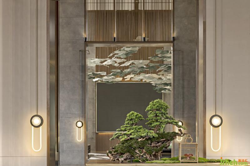 枯樹,在東方文化中是一種古老的美學(xué)意向,寓意生衰。入口處,巍峨高聳的枯樹將堅(jiān)韌的品質(zhì)注入前廳空間,歷史的風(fēng)云際會(huì)與古往今來的名流傳奇交融成華麗的篇章,手工藝人用嫻熟的技法將其繪入金色的朝云,室內(nèi)設(shè)計(jì)師以千山獨(dú)行的傲然風(fēng)骨層層席卷著感官與知覺,本真的智慧和美褪去了一切凡俗形跡。