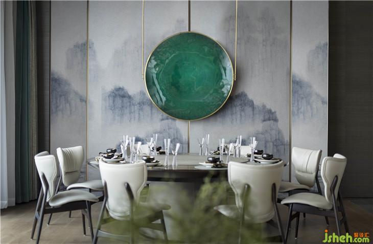 私宴廳取“團(tuán)圓”之意,運(yùn)用圓桌、圓燈、圓盤等元素,勾勒上幾筆金屬線條,營(yíng)造出濃郁的海派東方氣場(chǎng)。丹青屏風(fēng)反映每位賓客的愿景,胸中有丘壑,眼里存山河。