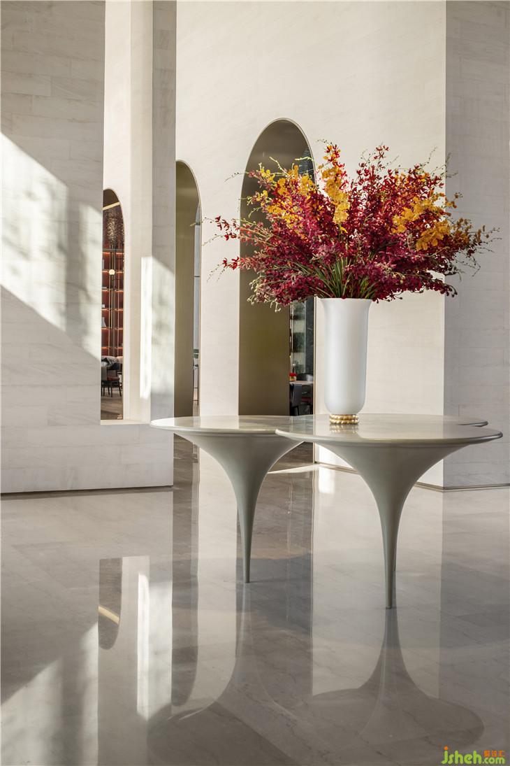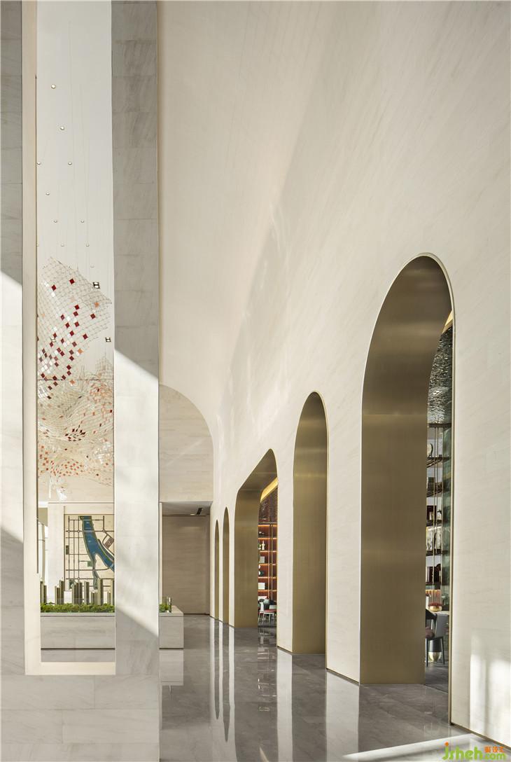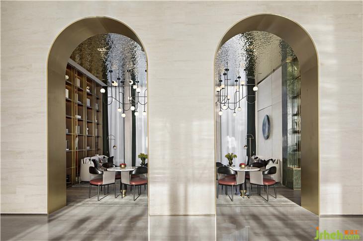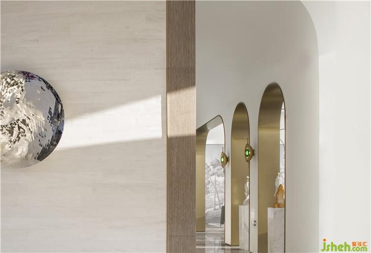 淺洽區(qū)將拱門元素運用到了極致,簡潔利落的弧形內(nèi)側(cè)鑲上了金邊,傳統(tǒng)元素與當代藝術(shù)的碰撞賦予拱門新時代的定義。