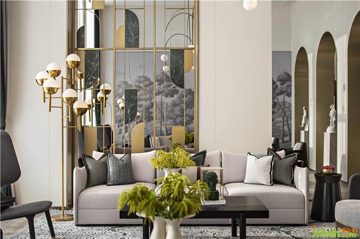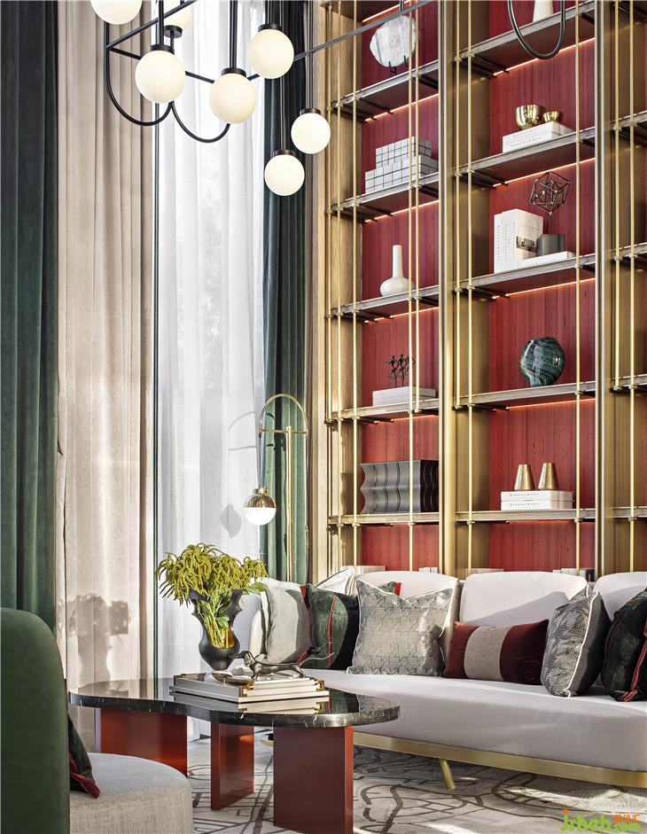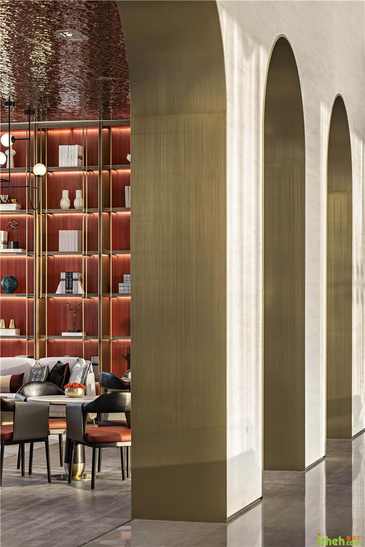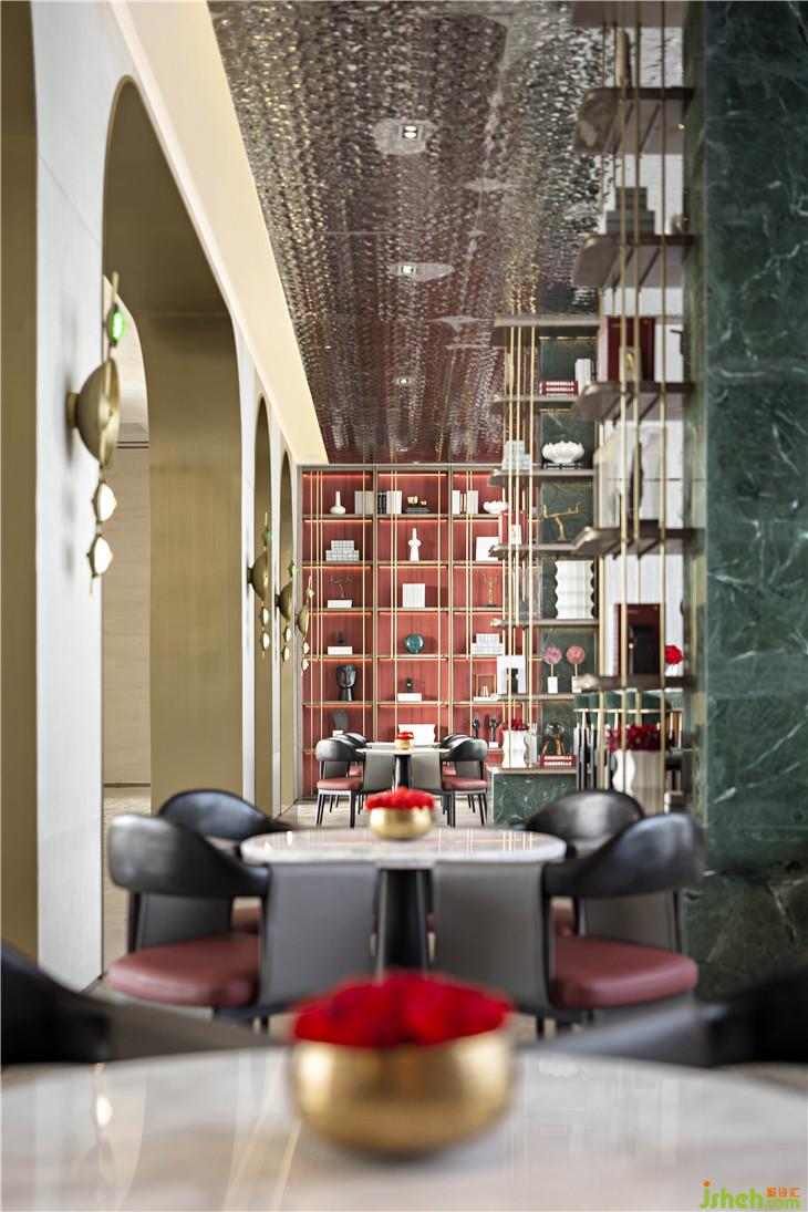 水吧區(qū)呼應(yīng)了翡翠主題,零星翡翠綴滿幾何裝置,以點、線構(gòu)筑面的意象,愈是簡單,愈是呼喚起人與自然的靈魂共鳴。設(shè)計師以幾何元素凝聚空間,傳達美學奢華的生活態(tài)度。