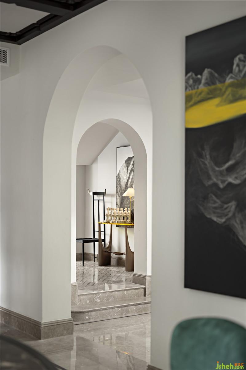 從建筑外觀到室內,拱門設計無疑是空間中最引人注目的亮點,經典的幾何線條在空間交匯處劃下瀟灑自由的一筆,破格又落定,促成雙空間的融合。皆因設計師黃全對細節(jié)的一絲不茍,每一個構件都在美學態(tài)度的牽引下找到最合適的表現(xiàn)形式。