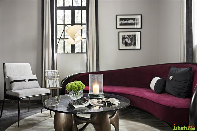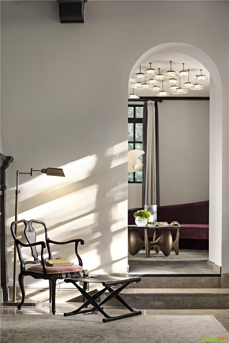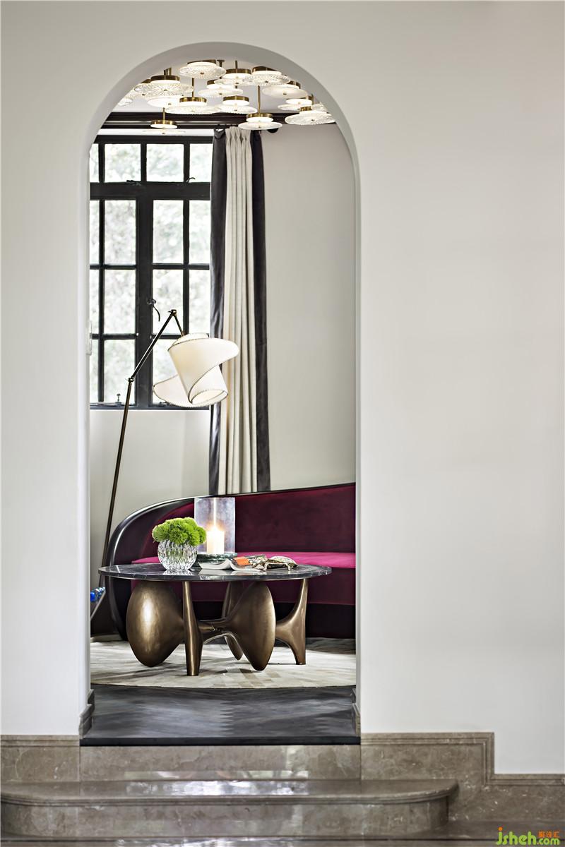 設計師在休息區(qū)設置了參差錯落的琉璃荷葉天花藝術裝置,用現代的手法將東方的美學意蘊揉入空間表達,展現不一樣的東方風情。紅色絲絨沙發(fā)則完美的演繹了海派的典雅和高貴。