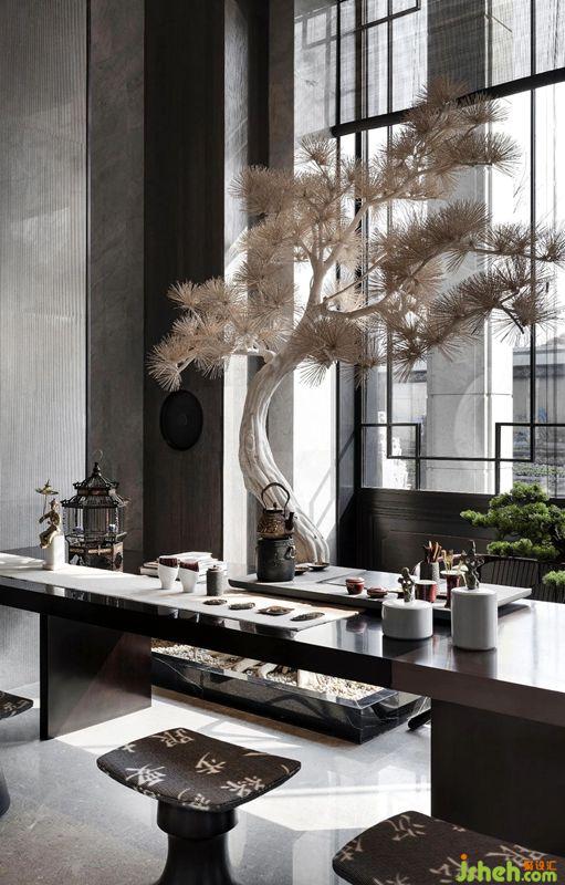 瀘州源遠(yuǎn)流長的茶文化亦是此次設(shè)計中著重刻畫的元素,室內(nèi)設(shè)計師在入口接待處設(shè)置了半開放式的茶室,瀘州人“會來攜客試茶甌”的熱情顯露無余。拋棄傳統(tǒng)茶室濃重的包漿感和繁復(fù)的桌椅制式,用干凈利落的線條勾勒返璞歸真的寧靜畫面,是古典元素與現(xiàn)代設(shè)計風(fēng)格的一次完美融合。