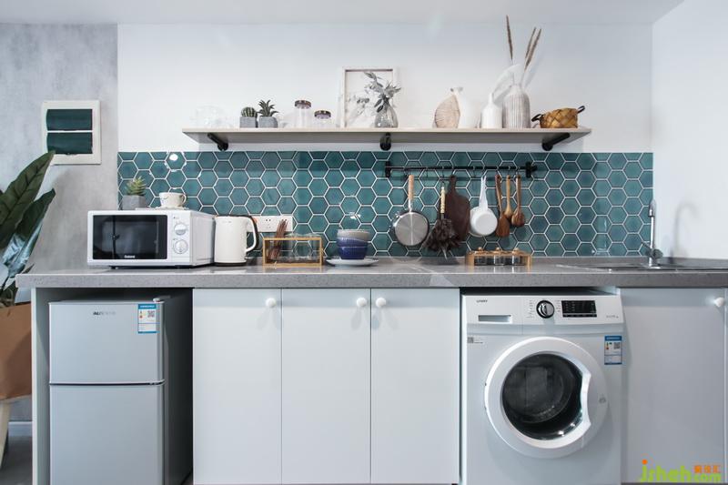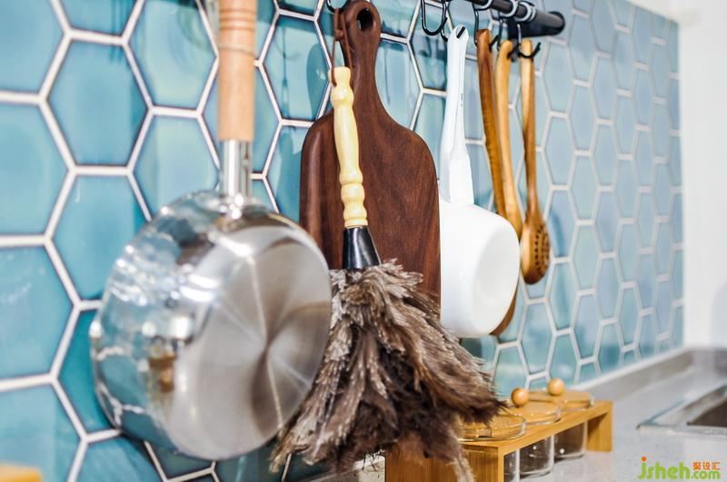 墨綠色六角菱形磚并沒(méi)有滿(mǎn)鋪墻面讓人沒(méi)有很滿(mǎn)的感覺(jué),讓空間留白,創(chuàng)造一切可能性。每一件飾品和廚房用具都是精心挑選出來(lái)的。