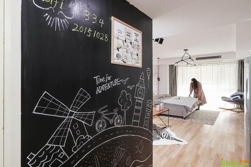 入戶設(shè)計了一面黑板墻,給業(yè)主提供了一個可隨意涂鴉創(chuàng)作的空間