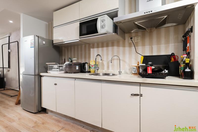 廚房在滿足基本儲藏空間的同時在軟裝上面做了添置和設(shè)計