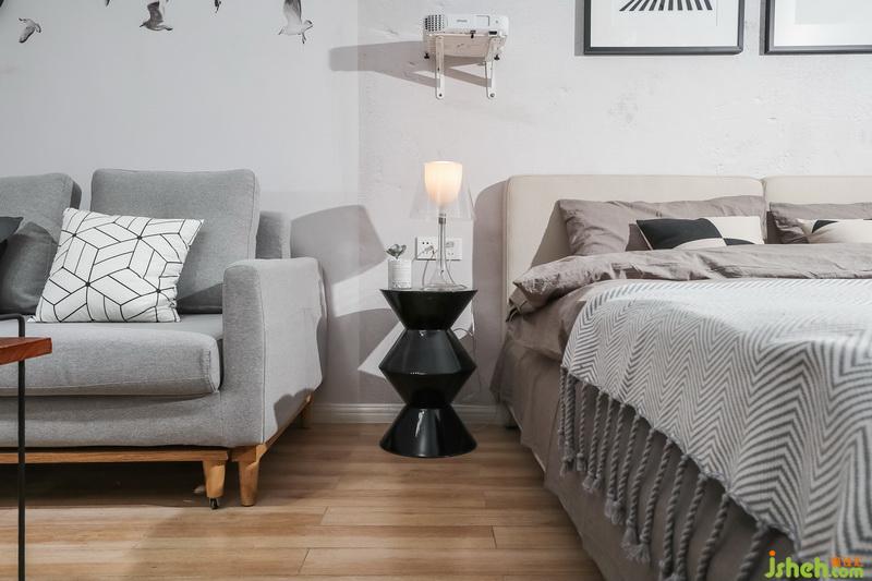具有線條感的黑色床頭柜給整個柔和空間帶來了一點科技感,恰恰符合業(yè)主的職業(yè)屬性