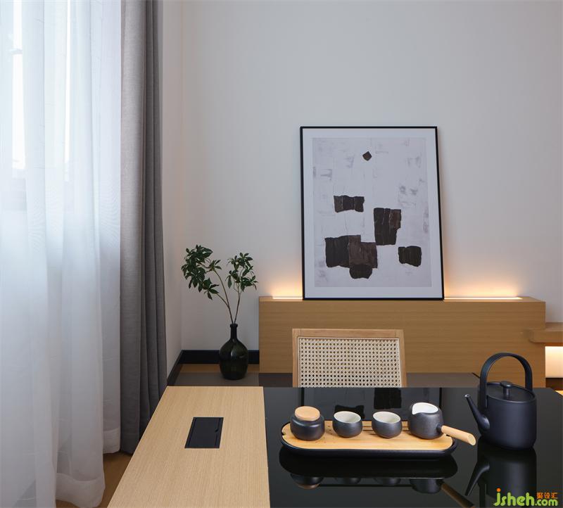 在現(xiàn)代室內(nèi)設計的美學思維與中式結構的搭配下,顯現(xiàn)出毫無違和的空間感和舒適美。