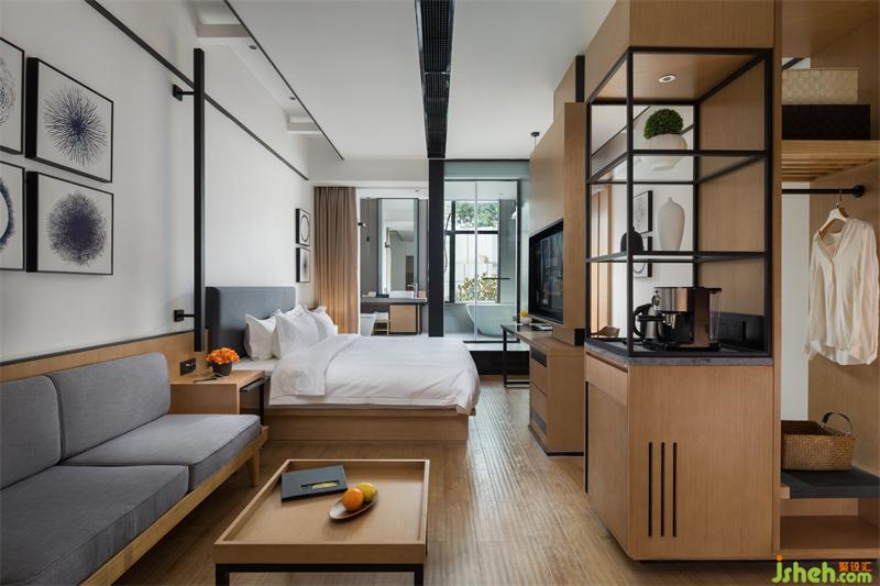 人南店整體以現代風格作為基調,以“之間”這個概念作為整體思路來設計。25間房,微型精巧,以現代風格為基調,酒店設計房間內盡量弱化各功能區(qū)域間的界限,強調整體的融合性。