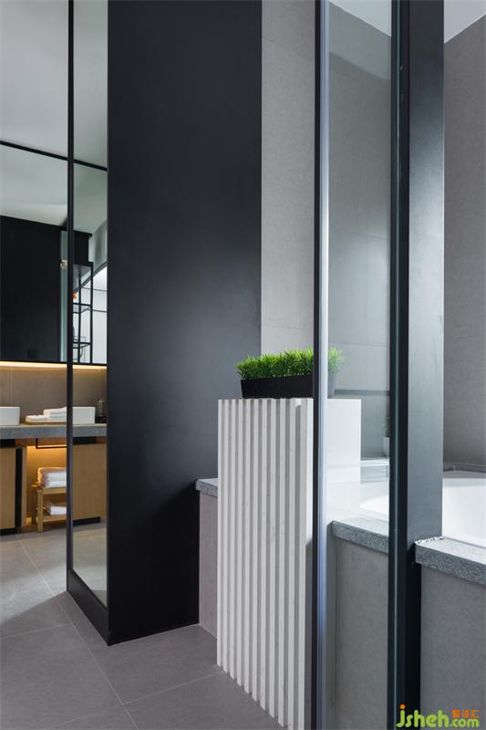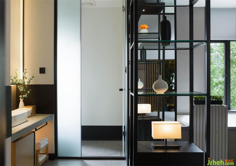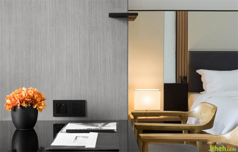 將空間中必要的功能體——電視墻、衣柜、迷你吧等——都通過細(xì)致的精算提煉而出,巧妙地重構(gòu)為空間裝飾的重要要素,從結(jié)構(gòu)、尺度到朝向、方位的布置,從細(xì)節(jié)變化與力度間的平衡與協(xié)調(diào),都規(guī)范而精巧,恰到好處。
