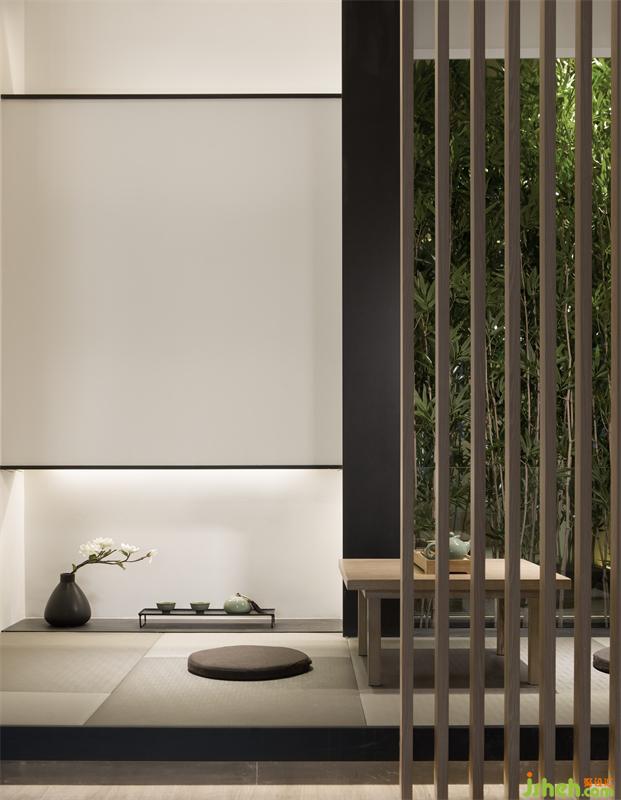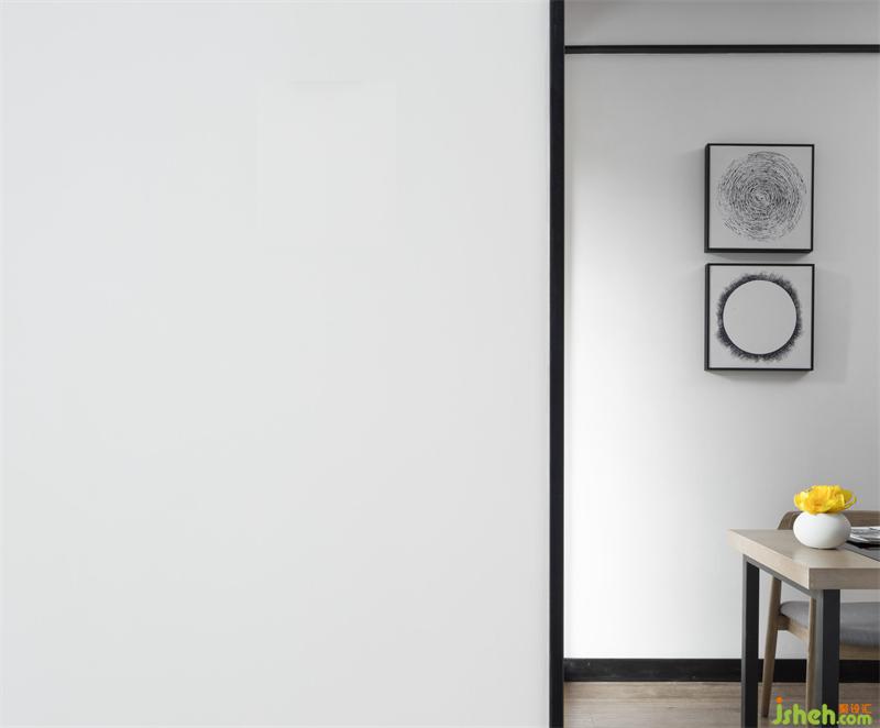 大面“留白”,局部出于對空間構(gòu)成的呼應(yīng)與柔化,以簡單元素、線條點(diǎn)綴一二,“之間”的意境得到強(qiáng)化,從而也留出了人們對于“畫外之境”的想象空間。