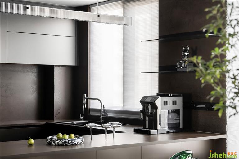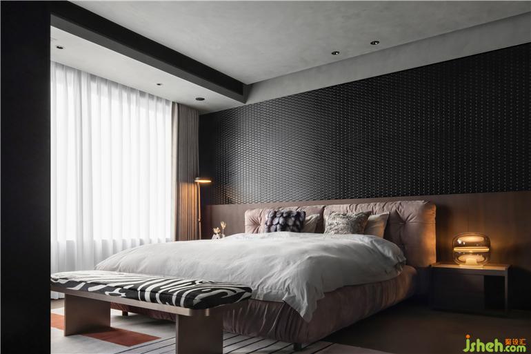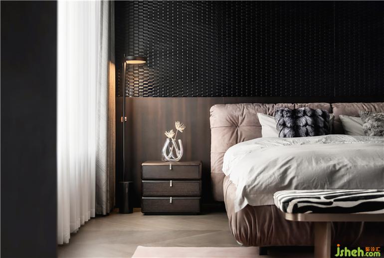簡潔有力的黑如同跳動的音符,有著強(qiáng)烈的個(gè)人風(fēng)格表現(xiàn)力,大平層裝修設(shè)計(jì)營造出簡練,肅穆、高級的氛圍感。主臥套間配備獨(dú)立衛(wèi)浴室和衣帽間,為居住者提供舒適的尺度。背景墻雅黑的線條感,柔軟的布藝包裹整個(gè)床架,構(gòu)建出奢享的生活格調(diào)。主臥采用無主燈設(shè)計(jì),玻璃和金屬床頭燈散發(fā)出柔和的暖光,喚醒居住者釋放情緒壓力,打造獨(dú)一無二的靜謐氛圍。