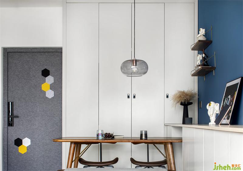 2. Faced with the problem of receive receive integration of public space to metope space, forming a for up to 6 meters of hanging wall ark, let a space is the cause of suspension is lightsome connect fully, the receive to meet the demand of the present use of the bedroom, specially set aside small room closet storage capacity, also late to greet the arrival of the baby, play to reserve enough space;