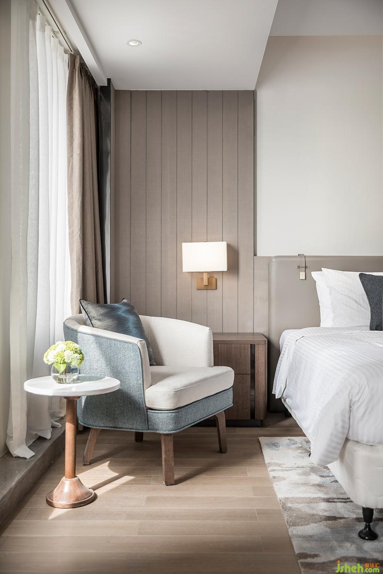 簡潔的石材,溫暖的木紋與墻面纖維壁布刷白的質(zhì)感,保持柔和的色調(diào),凸顯空間的澄明,表現(xiàn)視覺中心的含蓄和虛無。酒店設(shè)計選材配飾注重生態(tài)環(huán)保,微妙的紋理使穩(wěn)重與輕盈相映相依,喚起環(huán)境低調(diào)的魅力與無窮的回味。