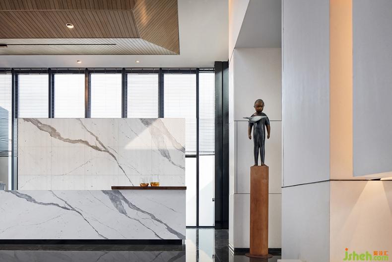 佇立于前廳的原創(chuàng)藝術(shù)品《天際》,象征峰層生活的高度。云端之處沉穩(wěn)雅澹的意境,是內(nèi)心高貴精神的投射,作者為巴塞爾Basel藝術(shù)展與香港Art Central特邀參展中國雕塑藝術(shù)家李偉與劉知音。