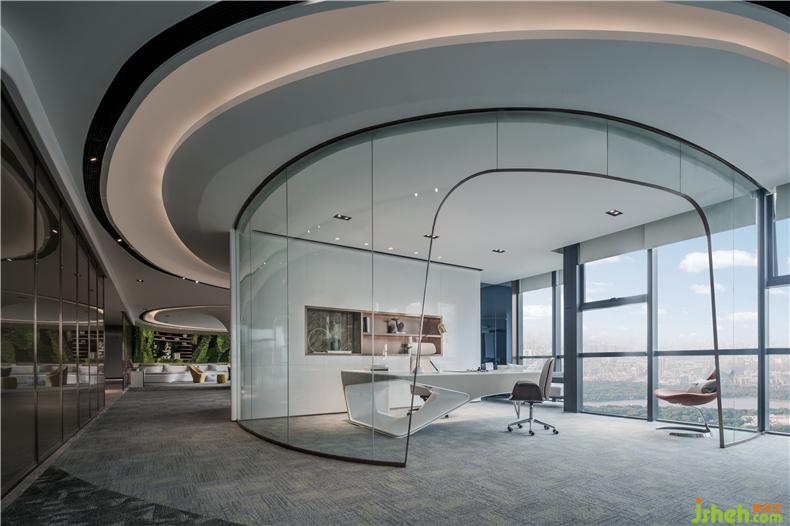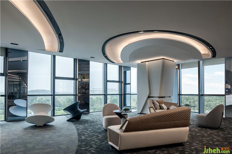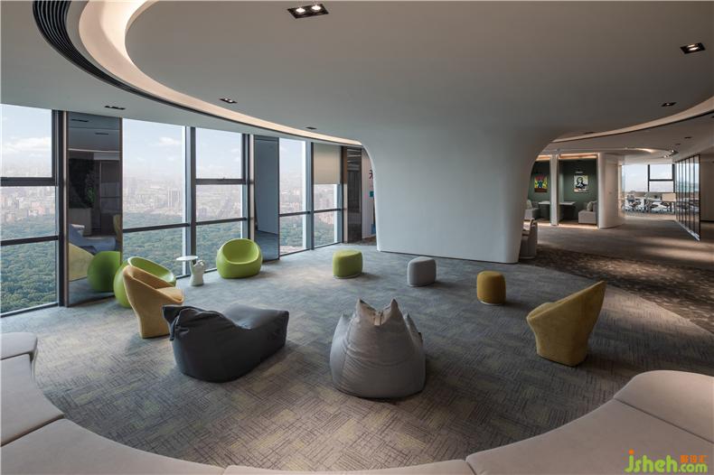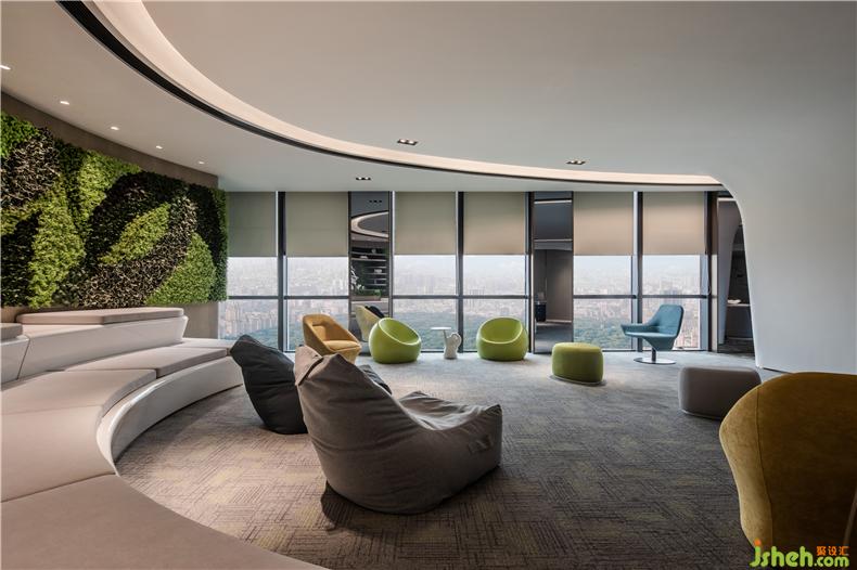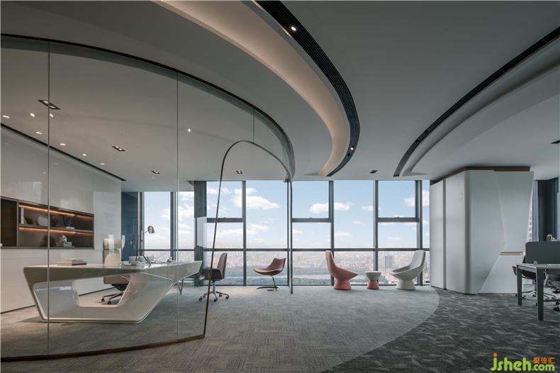 透亮的玻璃窗,爭取自然光最大限度的滲透量,引進外景,城市的日與夜變成室內(nèi)一幕,將城市之景盡收眼底。同時將獨立辦公室與開放辦公區(qū)隔開,但又保留兩者之間的互動性,拉近管理層與部門員工之間的距離,鼓勵彼此在舒適自然的氛圍中研究與討論,收獲信息,激發(fā)靈感,亦可在工作之余放松休憩。
