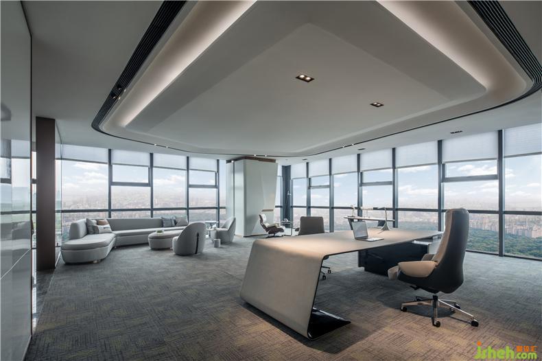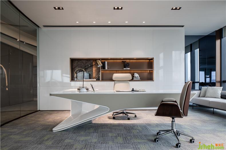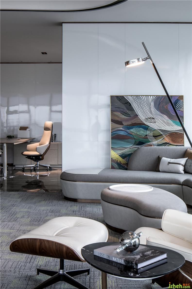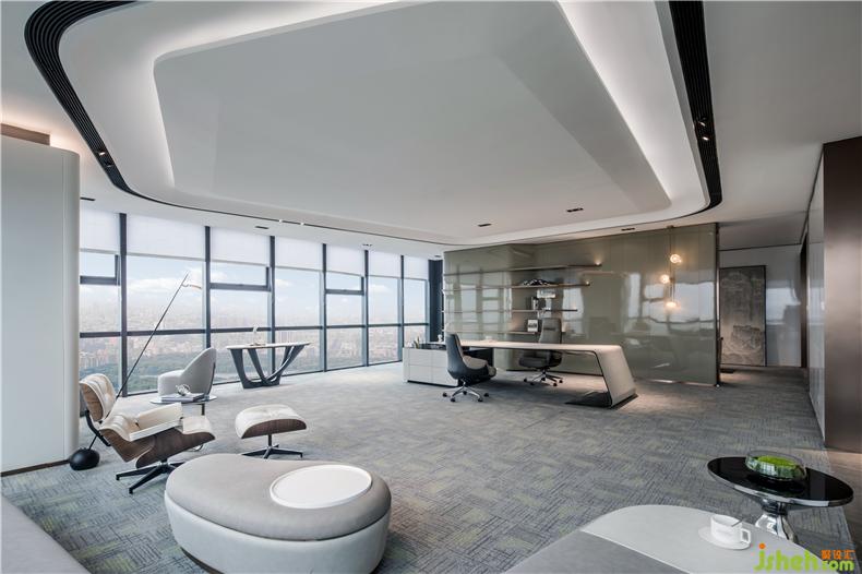 簡(jiǎn)約高質(zhì)最能體現(xiàn)空間的不凡氣度,總裁辦公室摒棄繁復(fù)華麗裝飾,以全新的智能配備達(dá)到最佳的辦公及社交體驗(yàn),用材質(zhì)、光影、弧線塑造合適的自由空間,透明玻璃門的設(shè)計(jì)使其劃分了空間私密感之余,又不會(huì)太過(guò)的規(guī)定界限,滿足空間定位。獨(dú)立性的茶室讓忙碌的身心得以放松,亦為商務(wù)社交營(yíng)造最舒適的氛圍。