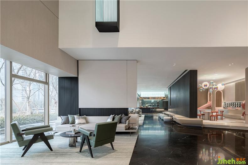 在體現(xiàn)產(chǎn)品精工細(xì)筑的同時(shí),設(shè)計(jì)師希望這個(gè)空間能夠使得未來的生活成為可想象、可觸摸、可感知的具象客體。在石材構(gòu)成的大氣磅礴的空間格局彰顯不凡,又用溫暖的木色和充滿人情味的功能設(shè)置來撫慰那些在日常社會中砥礪前行的業(yè)主們。