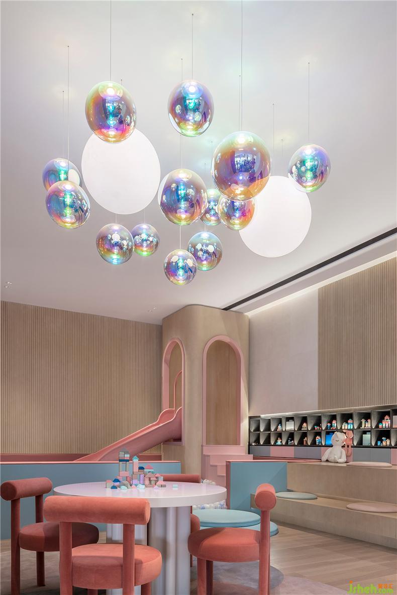 明亮柔和的色彩,豐富的童趣元素,多樣的家具裝置,多彩的泡泡吊燈,是兒童書吧區(qū)的亮點(diǎn)所在。粉色的滑滑梯,顏色各異的玩具球,書架上童書,同時(shí)滿足了孩子的游戲娛樂和學(xué)習(xí)需求,在閱讀和童趣的交流中收獲成長。