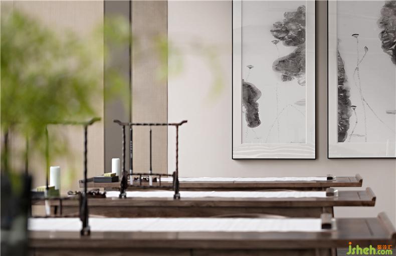 國學(xué)課堂,中式桌椅與大面積的玻璃窗,為未來不定期舉辦的各種精彩課程,青島會所設(shè)計營造出自然愜意的課堂氛圍,展現(xiàn)傳統(tǒng)文化的精粹與多樣性。