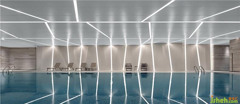 功能齊全的健身室和室內(nèi)泳池是瀾玥匯社區(qū)會所對品質(zhì)生活的理解。青島會所設(shè)計泳池設(shè)計靈感源于山石,其形態(tài)猶如鬼斧神工般打磨過的石頭,菱面鋒芒而有力,切割面或平整細(xì)膩,或錯亂而有序,整體形態(tài)渾然天成。每一面都經(jīng)過深思熟慮,可謂獨具匠心。