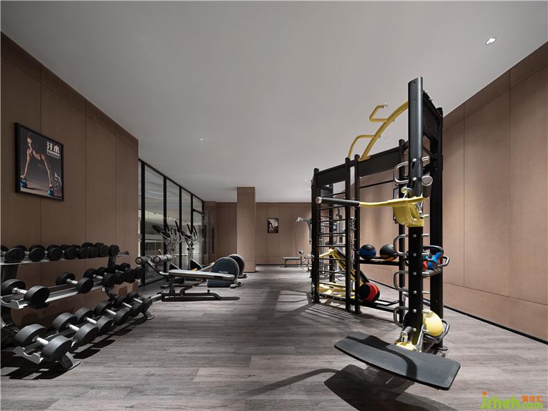 健身室,與泳池比鄰,中間的天光走廊引入自然光線,讓人們擁有舒適輕松的健身環(huán)境,傳遞一種健康的生活理念。