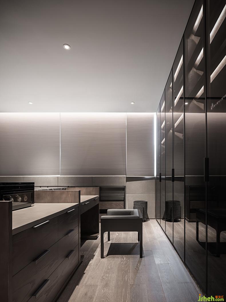 衣帽間環(huán)視所見,硬朗與柔軟、溫潤與質(zhì)感、點與線、大與小......交融共舞。這皆是深圳別墅裝飾設(shè)計師精準(zhǔn)拿捏室內(nèi)尺寸、收納比例、構(gòu)圖審美及細(xì)節(jié)重視的最佳證明。