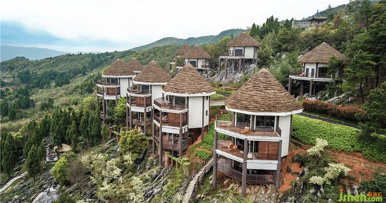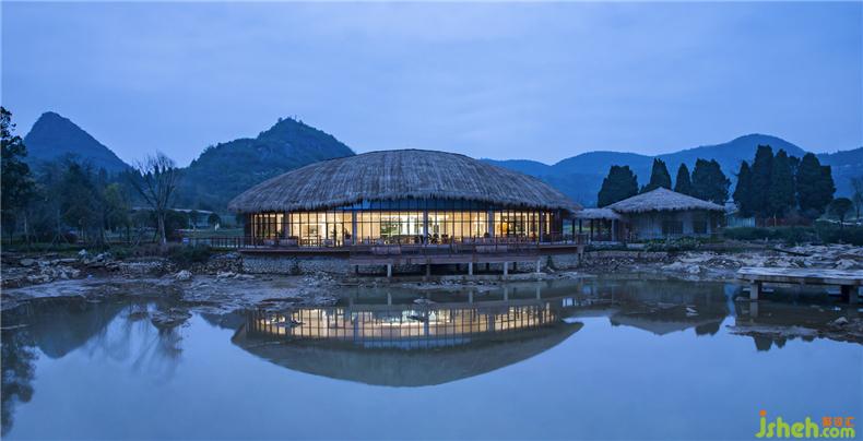 碧峰數(shù)座,嘉樹(shù)成蔭,茅舍數(shù)間隱于叢林之中,環(huán)境清幽。山居左右,湖水環(huán)繞,水平如鏡。酒店設(shè)計(jì)遠(yuǎn)處山巒起伏,連綿不斷。此般寄情于山水的山居之致,不僅是當(dāng)今趨勢(shì),更是必然的回歸。