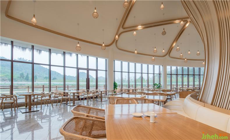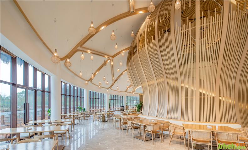 稻田餐廳的空間感、線條感及陳設(shè)藝術(shù)感都能透過(guò)“意”去參透東方那種含蓄而深遠(yuǎn)的美學(xué)修養(yǎng)。裝修設(shè)計(jì)陳設(shè)色調(diào)與濕潤(rùn)的木色主調(diào)和諧統(tǒng)一,編藤織物以起伏的形態(tài)穿插于空間的流動(dòng)之中,演澤空間的色香味俱全。酒店設(shè)計(jì)