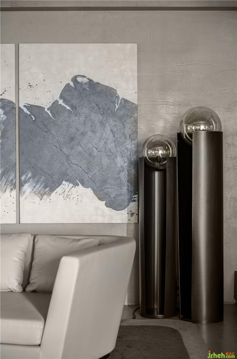 通過(guò)對(duì)材料的把控,別出心裁的折疊出概念中的形態(tài)美,轉(zhuǎn)接到空間中,會(huì)所設(shè)計(jì)客廳不對(duì)稱藝術(shù)裝置為安靜空間奏響了跳躍的音符,同時(shí)兼容了內(nèi)在的品質(zhì)和外在的優(yōu)雅氣質(zhì),看似隨意的當(dāng)代藝術(shù)點(diǎn)綴,于不經(jīng)意中流溢出不凡品味。