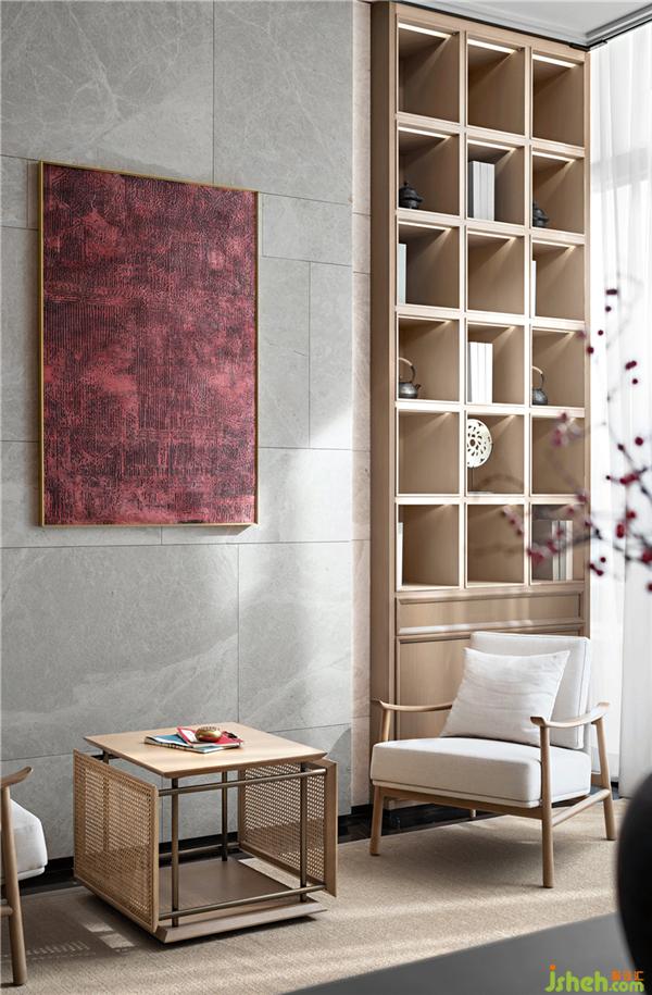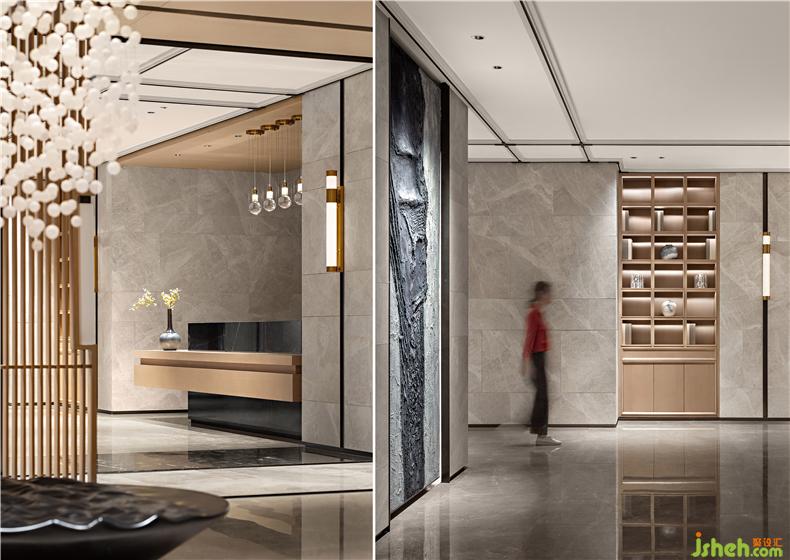吊燈與藝術(shù)裝置抽象地構(gòu)建出被山石、河流滋養(yǎng)的景象。樣板房設(shè)計(jì)讓體驗(yàn)都不禁產(chǎn)生“鳶飛戾天者,望峰息心;經(jīng)綸世務(wù)者,窺谷忘反”的感觸。