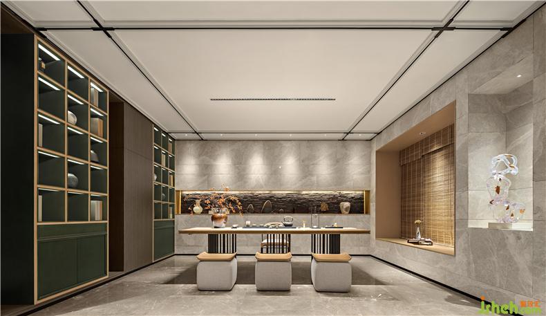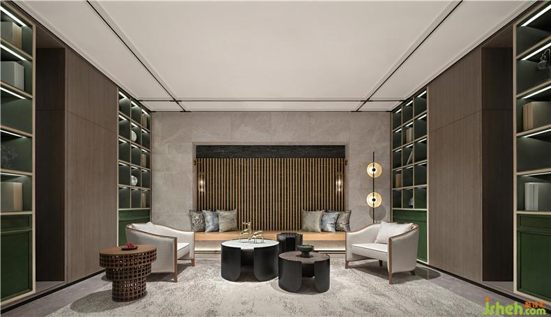 以‘禪茶’為線索,茶室延續(xù)整體空間溫潤且淡雅的空間氣質(zhì),質(zhì)樸而溫暖的木制品配搭簡約的白色調(diào),雅致之中,律動之內(nèi),使人舒適?;谠臻g格局的規(guī)劃,我們采用了中軸對稱的空間布局方式,樣板房設(shè)計舒適的沙發(fā)搭配方正桌子,能夠讓人們更順暢的進行交流與互動。