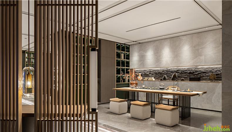 整體設(shè)計看上去通透寧靜,意蘊深遠,充滿禪意。品鑒柜將實用的、材料的、結(jié)構(gòu)的特點與裝飾的、美化的、觀賞的特點交融于一體,是實用性與美學性創(chuàng)作的統(tǒng)一。