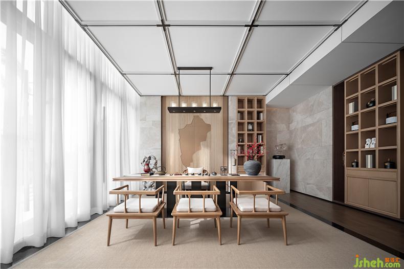 閱讀、品茗本身就山居的生活方式,與溫婉細(xì)膩的禪茶文化糅合,樣板房設(shè)計(jì)水吧區(qū)的設(shè)計(jì)發(fā)掘出一種與時(shí)俱進(jìn)的人文價(jià)值,傳達(dá)人們對(duì)山居慢時(shí)光的追尋、觀照。