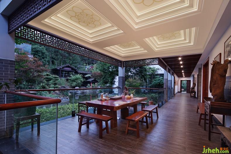 建筑室內(nèi)設(shè)計(jì)一體化是未來空間設(shè)計(jì)的趨勢,二層休閑吧設(shè)計(jì)成鋼結(jié)構(gòu)的坡屋頂形式與三層的涼亭在外觀上保持一致的同時(shí)本身獲得了更特別的空間感受。確保建筑的室內(nèi)設(shè)計(jì)和建筑風(fēng)格相統(tǒng)一首先確保就是做到視覺上的和諧統(tǒng)一。同時(shí)簡約也是設(shè)計(jì)的出發(fā)點(diǎn),我們利用原結(jié)構(gòu)、空間、層高以及較好的景觀優(yōu)勢,使室內(nèi)與室外進(jìn)行互動。二層入口位置在一層荷花池上,整個(gè)空間通透大氣,功能完善,中餐廳、休閑吧、會議室一應(yīng)俱全。室內(nèi)設(shè)計(jì)師