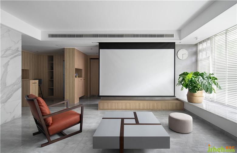 電視背景墻是大塊面的灰白色搭配,鮮明的色彩對(duì)比,給視覺(jué)上以沖擊感,但卻又很舒適。