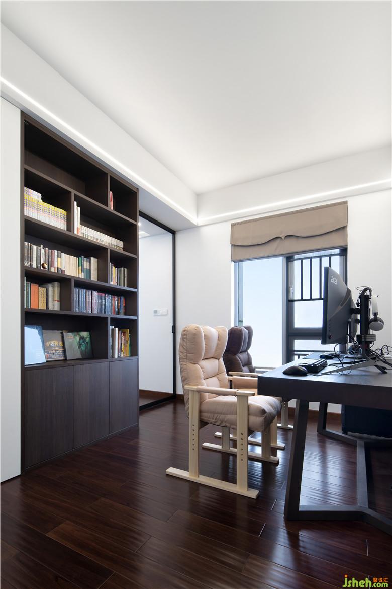 主臥里有一扇奇妙的玻璃門,打開進入書房的世界,關上又是獨立的兩個空間,互不影響。