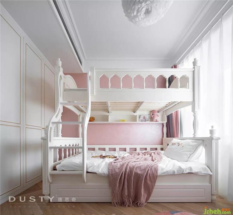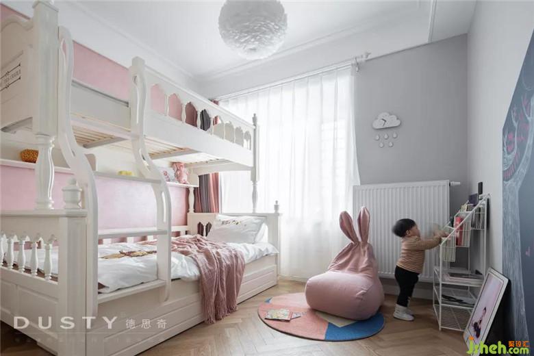 細(xì)膩而貼心的愛在那一面粉色的藝術(shù)涂料墻,這里是兩個(gè)小公主的房間。白色的上下床顯得溫馨而可愛,床對面裝修公司做了一個(gè)閱讀繪畫區(qū),希望小公主們養(yǎng)成愛學(xué)習(xí)的好習(xí)慣。