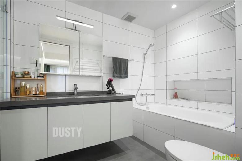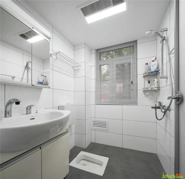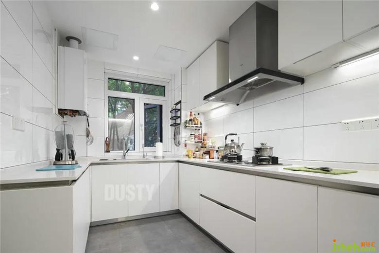 廚房與次衛(wèi)洗手間干區(qū)打通,裝修公司改為兩扇大玻璃推拉門,增加了餐廳采光,同時密閉廚房油煙。另外,在餐廳增加西廚高柜,補充中廚收納空間。