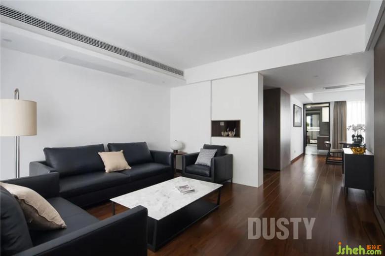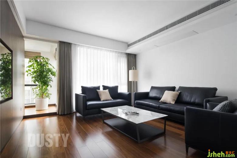 皮質(zhì)的黑色沙發(fā),看似硬朗卻十分的柔軟,