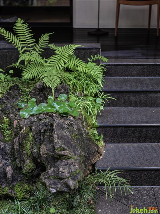 還有就是我們重點(diǎn)打造的花園,一直以來我們致力于打造桂式園林,桂式園林有別于傳統(tǒng)園林,也有別于司空見慣的日式園林。這個(gè)花園也是我們對桂式園林的一個(gè)實(shí)踐,桂式園林就是要突出它的地域特征以及山林氣息,展廳設(shè)計(jì)呈現(xiàn)它的野趣之美。我們選擇造景用的石頭就盡量在山野中找那些形態(tài)以及比較容易養(yǎng)護(hù)的山石。