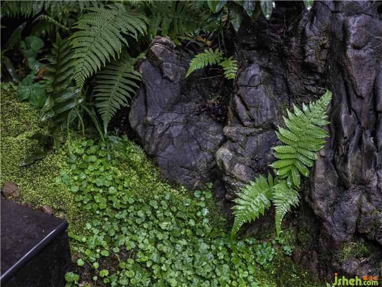 然后在選擇植物上盡量以較少的樹種來打造打造這個(gè)園林,配合一些小灌木,還有一些山林中經(jīng)常看到的一些蕨類以及一些地被植物,比如:苔癬、天胡荽、佛甲手、金錢草等等,這些都是運(yùn)用到桂式園林里面的基本造景元素。花園施工一個(gè)月,在清明節(jié)前完成,經(jīng)過一個(gè)多月的養(yǎng)護(hù),已經(jīng)完全看不出人工的痕跡,最終呈現(xiàn)出來的效果也達(dá)到了我們的預(yù)期。