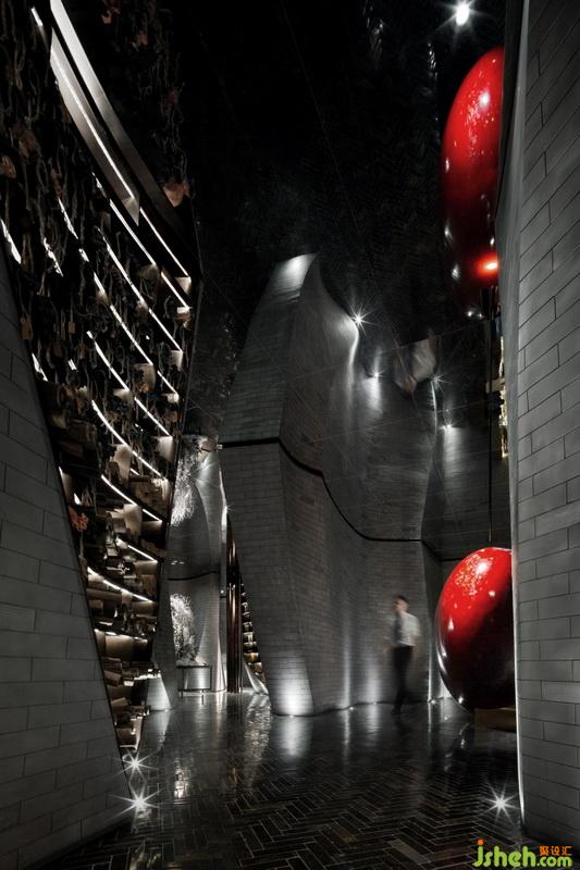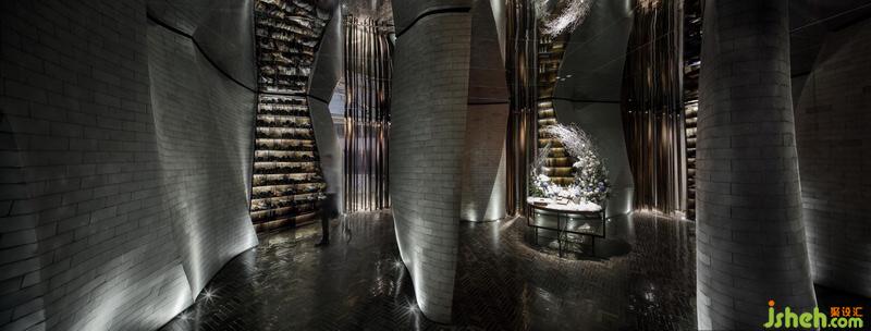 宋·川菜用現(xiàn)代的材料與設(shè)計(jì)手法來演繹的中式餐廳,十萬(wàn)塊異形的不銹鋼磚與四十萬(wàn)塊琉璃羽毛構(gòu)成宋餐廳的基本形態(tài)。曲面的形態(tài)打破了一貫的中式餐廳的想象,形成獨(dú)特的空間體驗(yàn)。