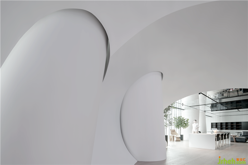 辦公區(qū)是使用頻率最高的區(qū)域,這里是設(shè)計(jì)作品產(chǎn)生的基地,設(shè)計(jì)原則是建立一種高效的開放式辦公秩序,簡潔干凈而嚴(yán)謹(jǐn); 不再受辦公桌限制,沒有邊界的形式可以鼓勵(lì)員工們交流。