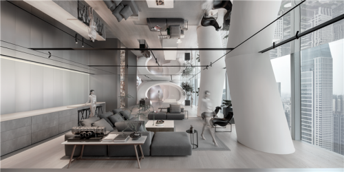 在娛樂(lè)空間里我們?cè)O(shè)計(jì)公司想提供有別于日常的現(xiàn)實(shí)感受,遠(yuǎn)離地面是件有趣的事情。X-Club希望用想象,情感及需求主導(dǎo)形態(tài),試圖構(gòu)筑一個(gè)在如云端漫步的情景及體驗(yàn)。X-Club主要由開(kāi)放及封閉兩大類(lèi)的空間構(gòu)成,開(kāi)放的空間由自由形態(tài)構(gòu)成,而封閉的空間這穩(wěn)定的幾何形態(tài)構(gòu)成,形成強(qiáng)烈的對(duì)比。