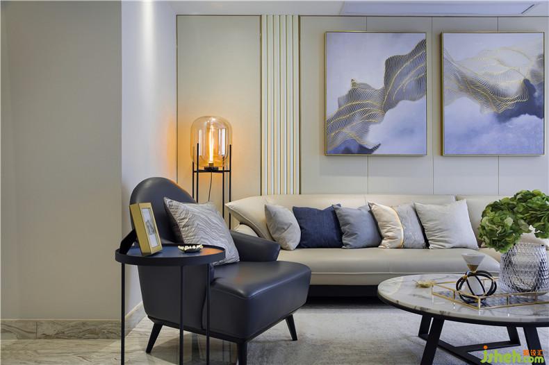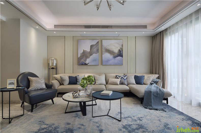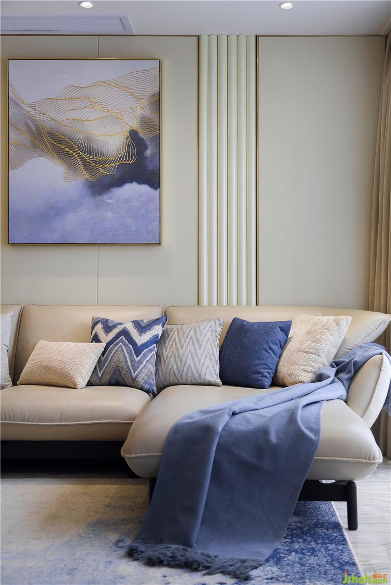 業(yè)主是一對中年夫妻,先生企業(yè)高管,性格內(nèi)斂,嚴(yán)謹(jǐn),太太企業(yè)財務(wù)高管,性格爽朗,她們向往的空間是安靜,優(yōu)雅、溫暖。在空間顏色架構(gòu)上選擇了比較適合他們的中性色——米色、白色、米灰色作為環(huán)境基礎(chǔ)色,軟裝上強調(diào)藍(lán)色為主體色點綴搭配綠色、黃色,在掛畫、抱枕、沙發(fā)、地毯都可呈現(xiàn),豐富了空間,傳遞出一種安定、淡然、從容的色彩語言。