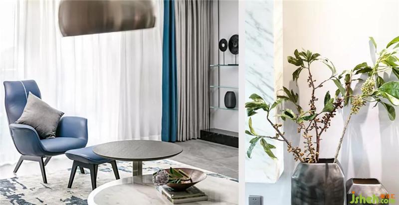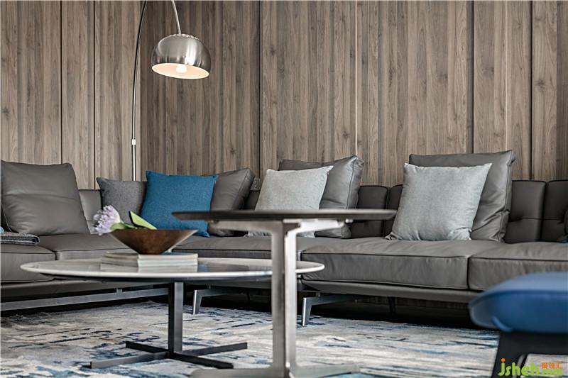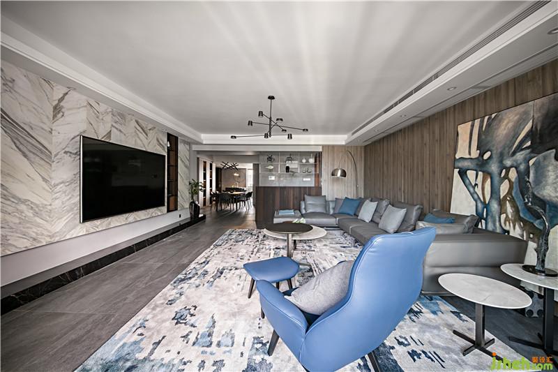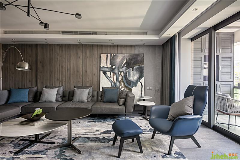 首先利用多層次的灰色度描繪空間的硬朗,海藍(lán)色作點(diǎn)綴,再有光線透過(guò)開放式景觀陽(yáng)臺(tái)照射進(jìn)來(lái),整個(gè)室內(nèi)空間有著男性的粗獷野性之魅力。深圳裝修公司