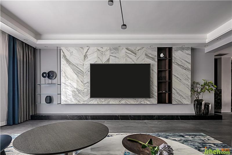 電視背景墻寬6米,層高2米7,較矮,屬于偏長(zhǎng)型空間。避免空間壓抑,所以兩邊各留白1米。右邊原生態(tài)的植物,讓整個(gè)客廳充滿生機(jī)勃勃的野生力量與堅(jiān)韌的氣度。深圳裝修公司