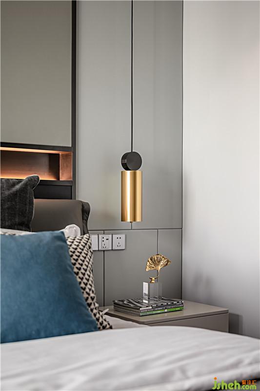 主臥的灰度呼應(yīng)房屋的整體設(shè)計(jì),帶給人沉穩(wěn)安心的感覺(jué),為睡眠加多一重保障。就如積雨將下的天空,暗灰深邃,最適合入睡了。幾處金屬裝飾,讓空間更吸睛靈動(dòng)。